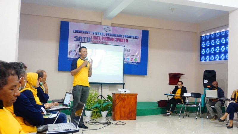 Aloysius Lagu Anggota Kelompok Tani Mekar Baru mengiris batang pisang untuk dijadikan pakan babi. Foto: EM/ 14/7/2022